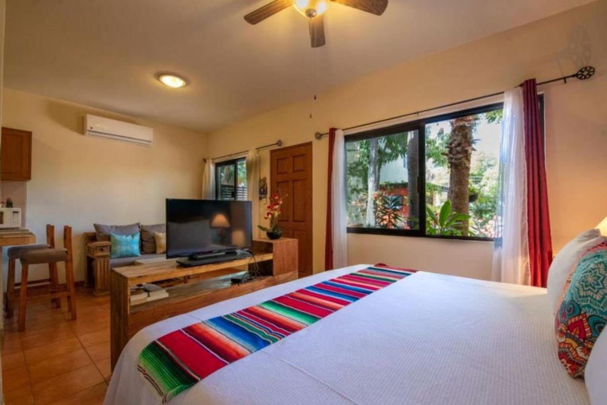 - Charming courtyard atmosphere: Gated garden patio with mango trees, seating areas, and artistic décor creates intimate boutique appeal.