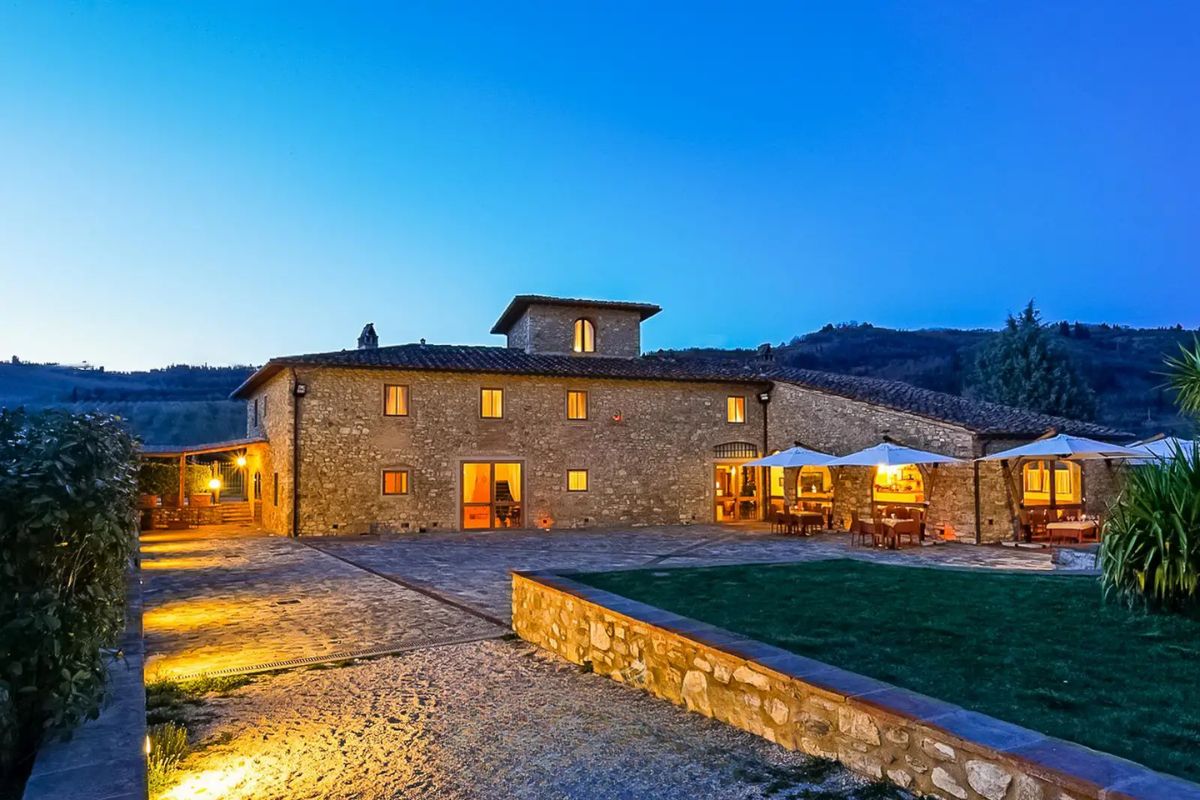This charming resort for sale is set among the rolling green hills of the Tuscan countryside, just twenty kilometers from Florence.