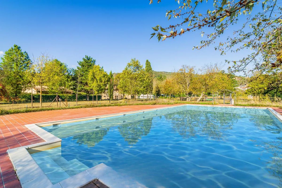 This refined property in Chianti offers generous spaces that enhance its versatility. Currently operating as a hotel where guests enjoy relaxing holidays immersed in nature, it may also be transformed into a private residence, divided into two units each with its own garden, or converted into several apartments.