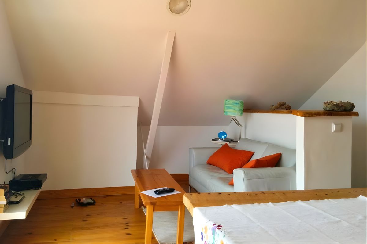 Casa Sesimbra offers two exclusive terraces — one with panoramic sea views and another with a pergola for relaxing under the sun. The building retains traditional stairs, preserving its authentic character while ensuring easy access between levels.