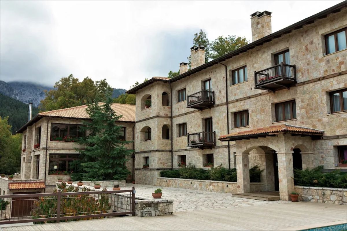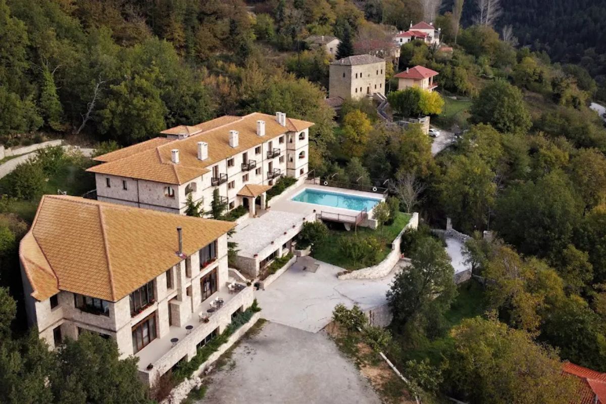Together, the three buildings create a cohesive hotel complex defined by stone architecture, mountain surroundings, and thoughtfully distributed interior and exterior spaces. The setting, scale, and layout form a property that blends hospitality, wellness, and landscape into a distinctive mountain retreat near Athens.
